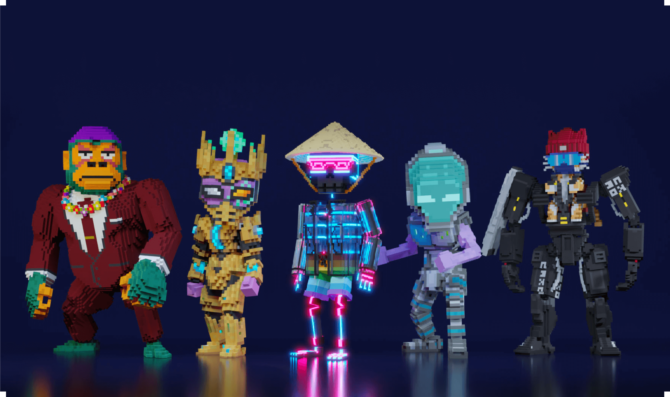 Once mint is complete and reveal has happened we will begin uploading the 3D assets for download. The available types are: .fbx, .glb, .glTF, and high resolution 2K .jpgs for PFP use.