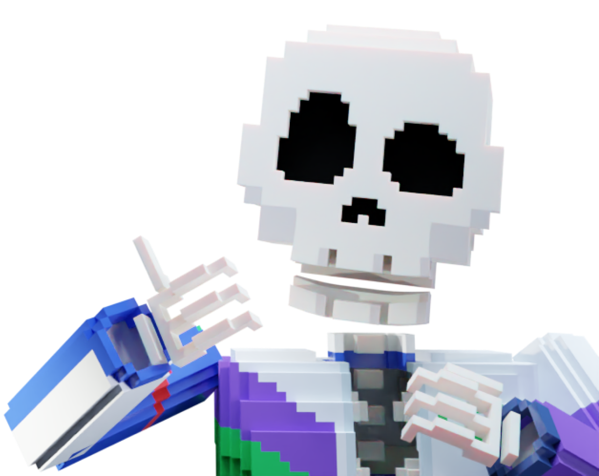 We’re going to hire a community manager, and we will produce a short voxel movie telling the story of Skeletonz Gang. Some of the early Genesis mints will be featured in this movie. Will it be one of yours? Large sets of Skeletonz gifs, stickers and emojis guaranteed.
